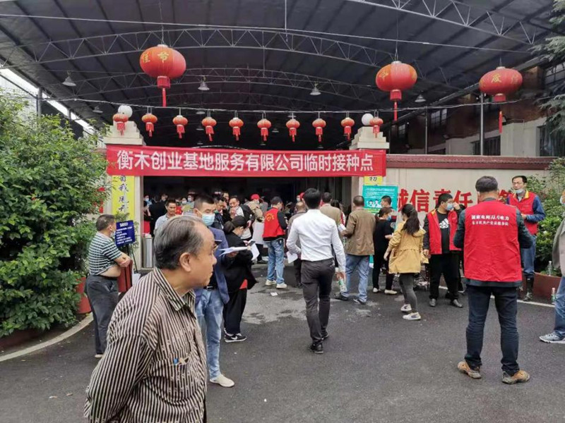 為協(xié)助屬地政府集中做好新冠疫苗接種工作,5月25日至5月27日,衡木創(chuàng)業(yè)基地服務(wù)有限公司黨支部在園區(qū)設(shè)立新冠疫苗臨時(shí)接種點(diǎn),前來(lái)接種新冠疫苗的居民群眾佩戴口罩,有序排隊(duì)等待接種。