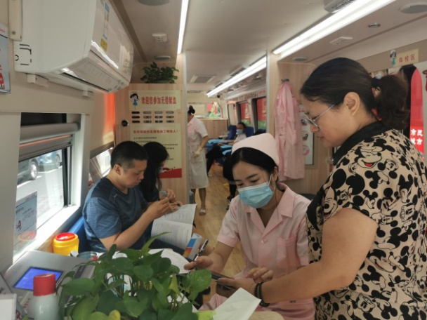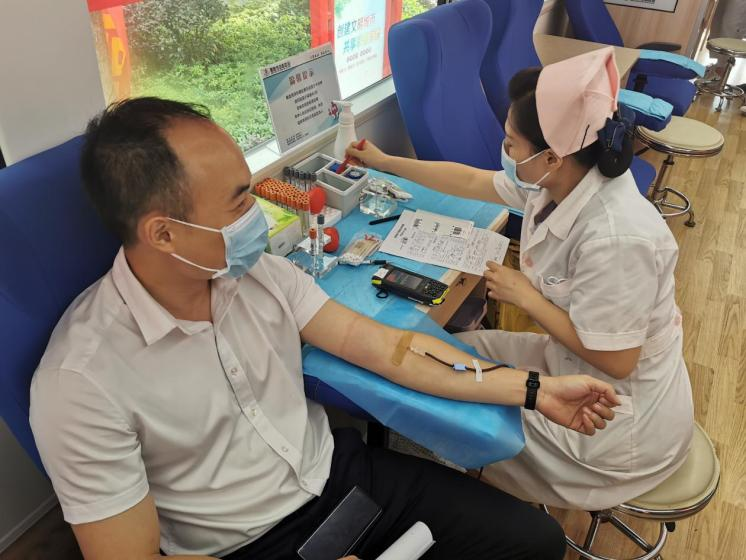 早上7點(diǎn)30分,獻(xiàn)血車緩緩駛?cè)牒胂鎳掇k公區(qū),無償獻(xiàn)血拉開了序幕,員工們陸續(xù)到獻(xiàn)血車登記排隊(duì),有條不紊地登記信息、血液化驗(yàn)檢測、采血。在這些獻(xiàn)血員工當(dāng)中,他們有的是數(shù)次參加無償獻(xiàn)血的老同志,也有剛參加工作不久的新員工,其中不乏巾幗不讓須眉的女同志。