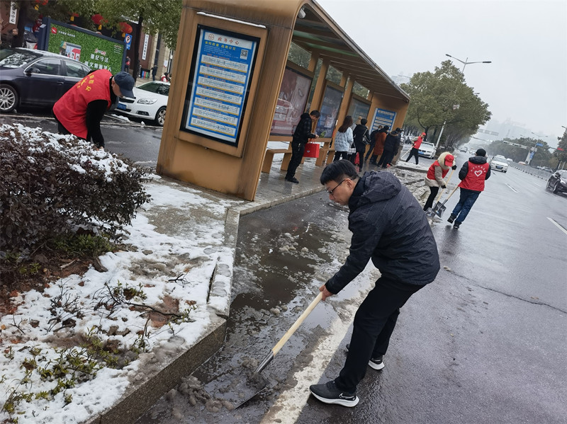 支部一聲號召,大家積極參加,穿上衡陽群眾紅馬褂,人手一把鐵鏟,紛紛來到集團(tuán)公司大門前的蒸湘區(qū)西外環(huán)道路上。道路上堆滿了厚厚的積雪,給行人、車輛通行帶來不便。大伙兵分兩路開始行動,雖然寒風(fēng)刺骨,但大家服務(wù)熱情很高,時刻不忘中國共產(chǎn)黨員的初心就是為人民服務(wù)。