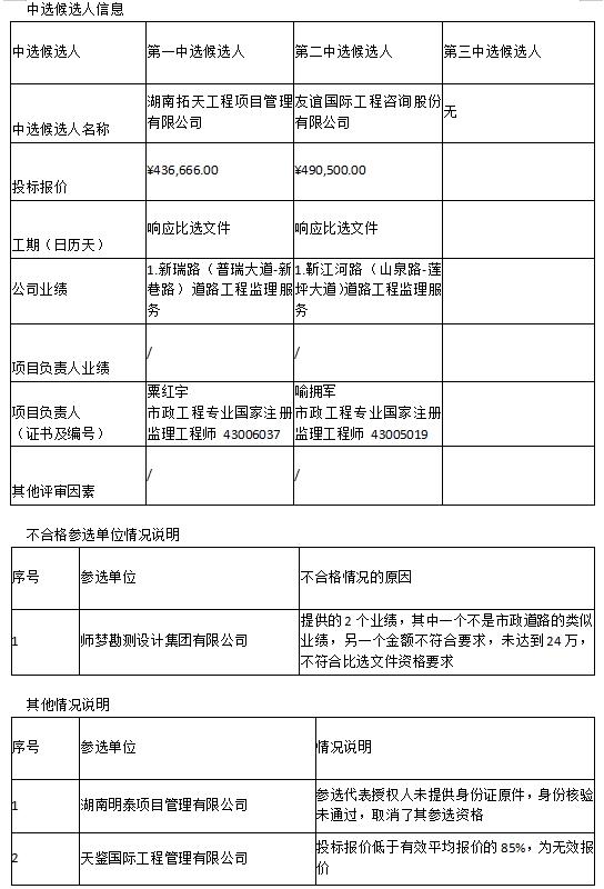 衡陽市雁城東路(東方里街-東二環(huán))及雁城東路與建湘連接線新建工程監(jiān)理服務內(nèi)部比選中選候選人公示