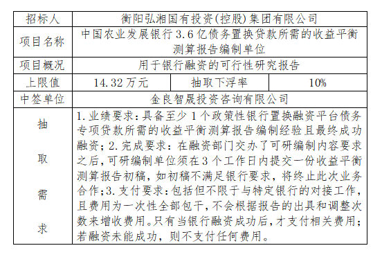 招 標(biāo) 人:衡陽弘湘國有投資(控股)集團(tuán)有限公司